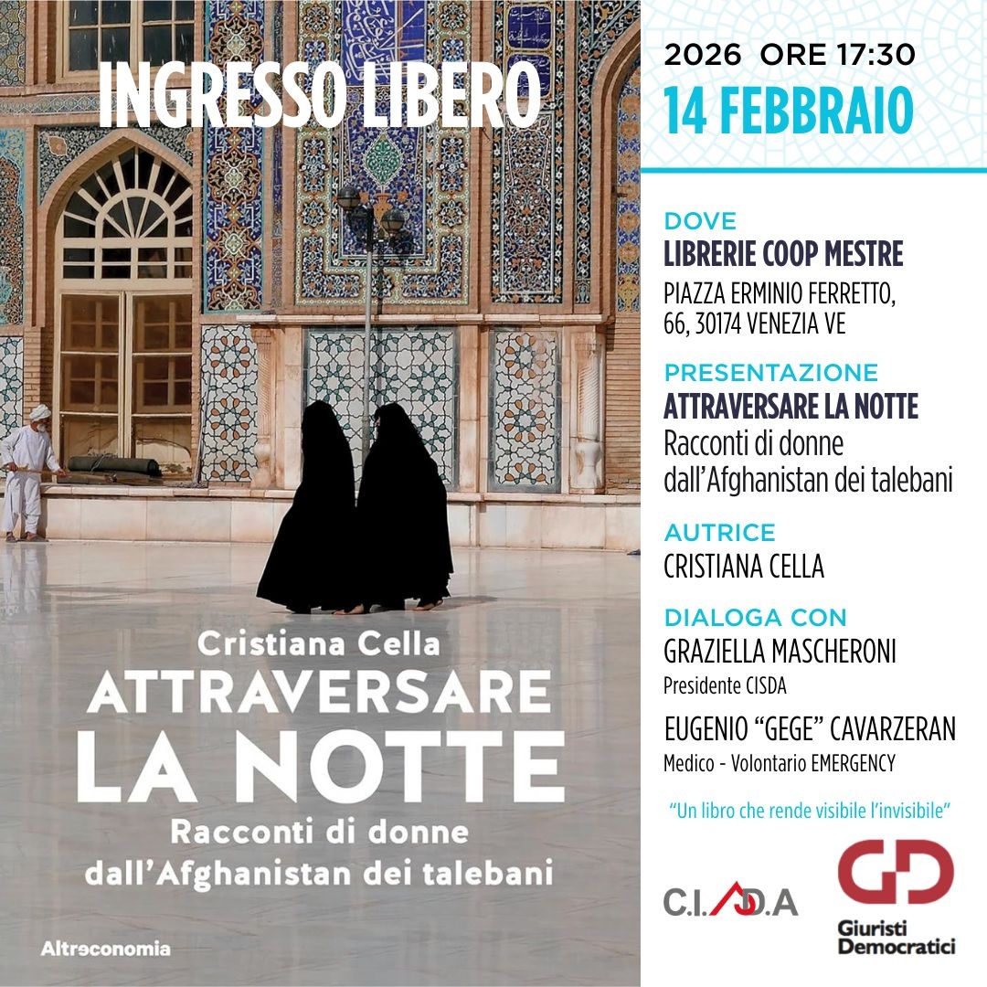presentazione del libro di Cristiana Cella "Attraversare la notte, Racconti di donne dall'Afghanistan dei talebani"